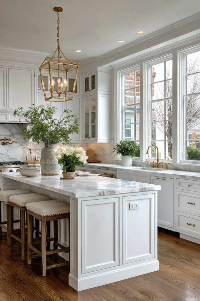 Luxury American kitchens take everything we love and elevate it—marble instead of quartz, custom cabinets instead of semi-custom, built-in espresso machines instead of countertop models. But luxury here still means family-friendly, just with better materials.