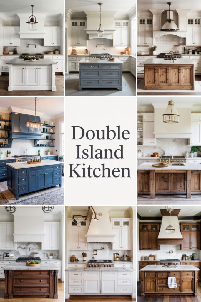 The two-island kitchen is peak American excess in the best way—one for prep, one for gathering, maximum function for busy families. This layout works in larger kitchens where traffic flow needs managing. One island might house the sink and dishwasher, the other provides seating and serving.