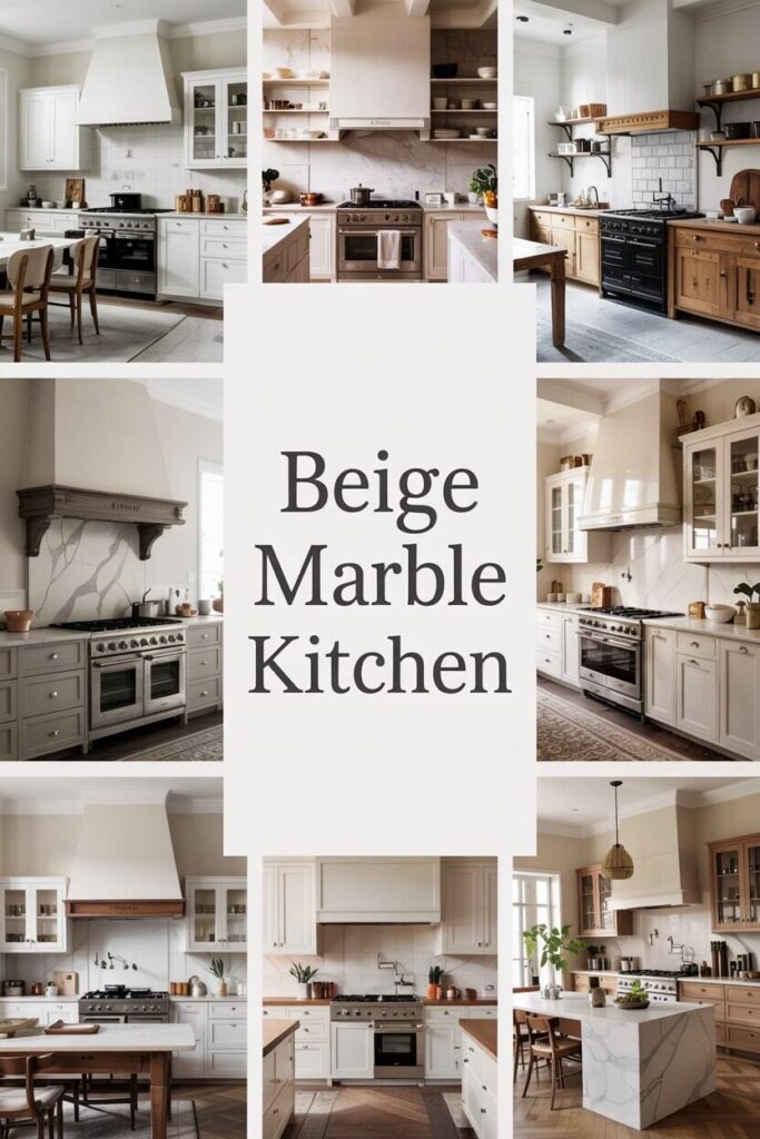 A beige marble kitchen or marble beige kitchen brings elegance that surprisingly works with toddlers. Beige marble flooring hides crumbs between sweepings. Beige kitchen cabinets marble counter combinations create a cohesive look that camouflages messes. Choose honed rather than polished marble for better slip resistance and less visible scratches.