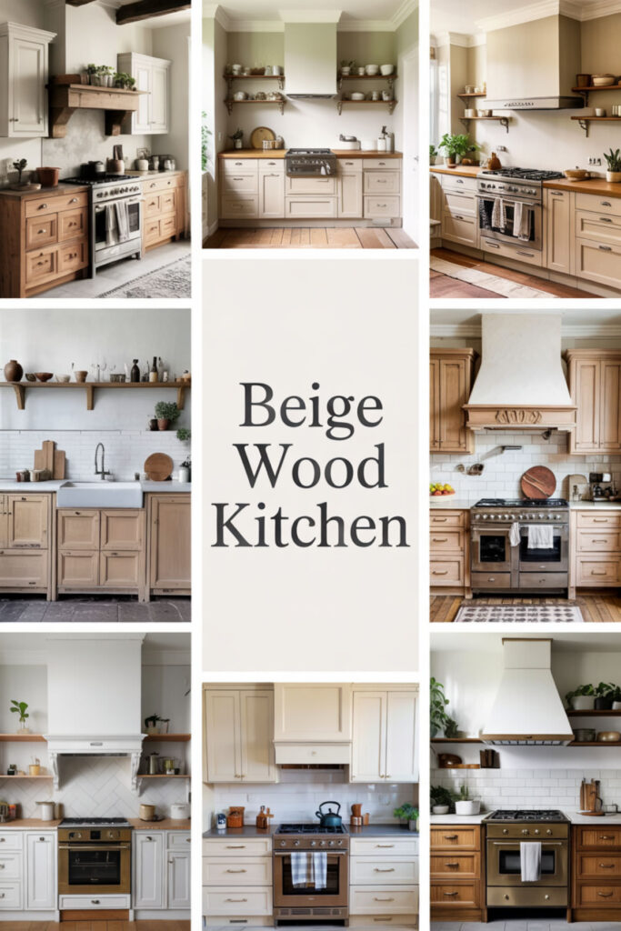 A beige and wood kitchen or beige and walnut kitchen brings natural elements that soothe everyone. Oak and beige kitchen combinations feel timeless and family-friendly. The wood grain adds visual interest without chaos. Natural materials age beautifully with family use rather than looking worn.