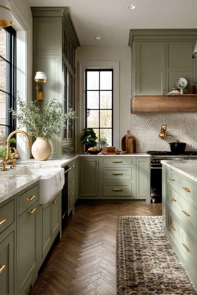 Sage Green and Beige Layered Throughout the Kitchen