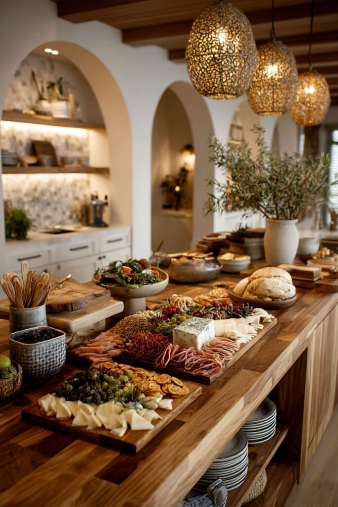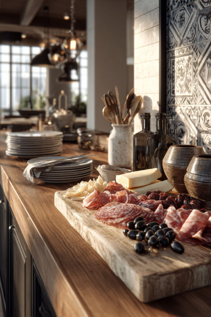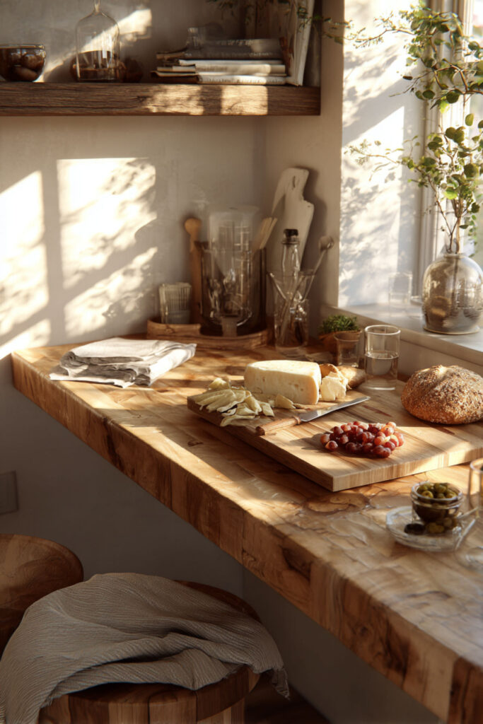 Not every kitchen has room for a permanent island — and that’s where a mobile butcher block island earns its place. A butcher block table on wheels gives you extra prep space when you need it and rolls out of the way when you don’t. It’s especially smart for smaller kitchens, apartments, or open-plan spaces where the layout needs to flex with your day. It reminds me of those beautiful little kitchen carts you see in walk-up apartments in the West Village — compact, warm, and endlessly useful. I’d recommend a solid wood rolling cart with a butcher block top, a lower shelf for storage, and locking casters — it’s functional, affordable, and it adds instant warmth. This portable kitchen island idea proves you don’t need a massive kitchen to have a great one.