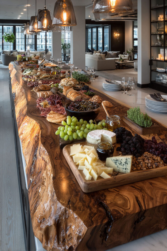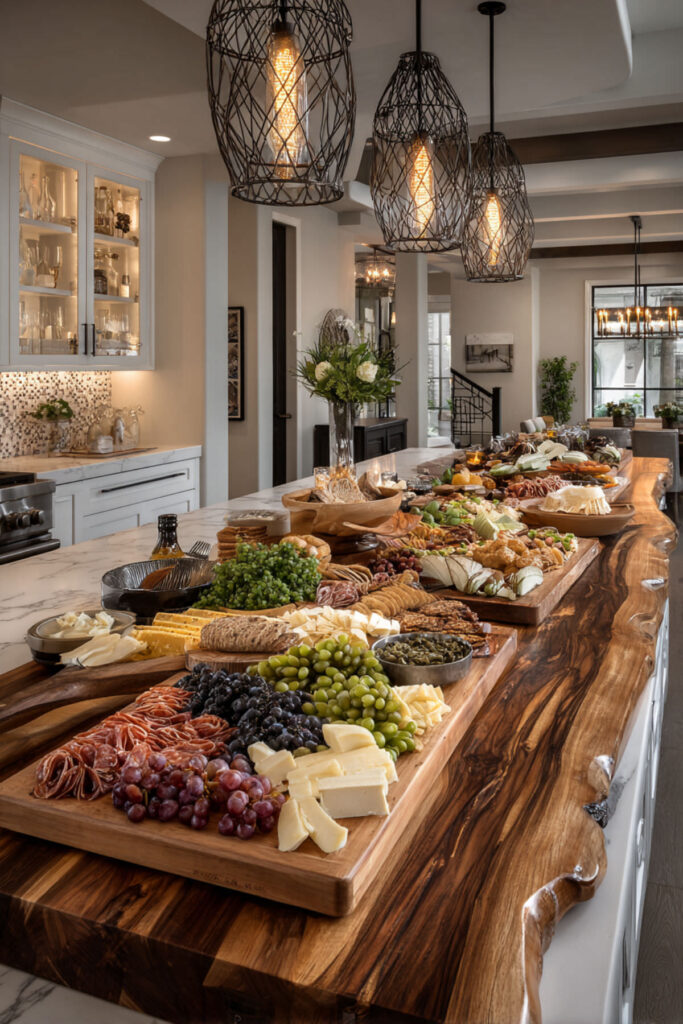 A butcher block surface is already the best material for prep work — but add a few built-in features and it becomes a serious cooking station. Think a routed juice groove around the edge to catch drips, a built-in knife slot along one side, or a cutout that holds a stainless steel waste bowl for scraps. These details turn an island from beautiful to brilliant. I recommend a custom butcher block island prep table with an integrated juice groove and a removable cutting board insert — it keeps your main surface protected while giving you a dedicated zone for heavy chopping. This kitchen island prep table concept is for women who actually cook on their island every single day.