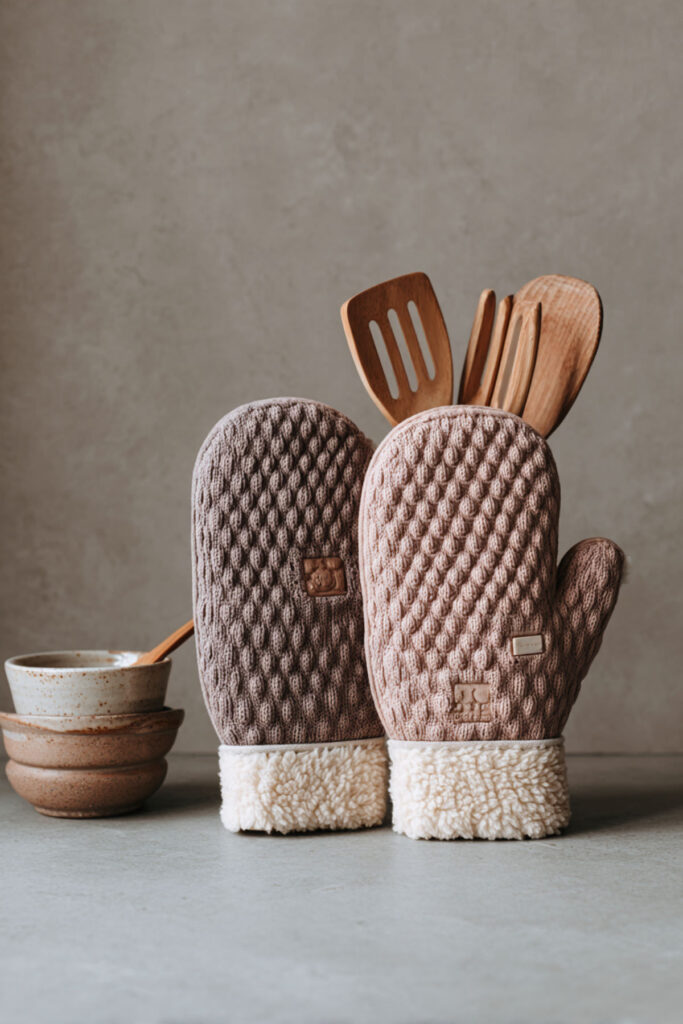 Aesthetic Oven Mitts in Warm Neutral Tones