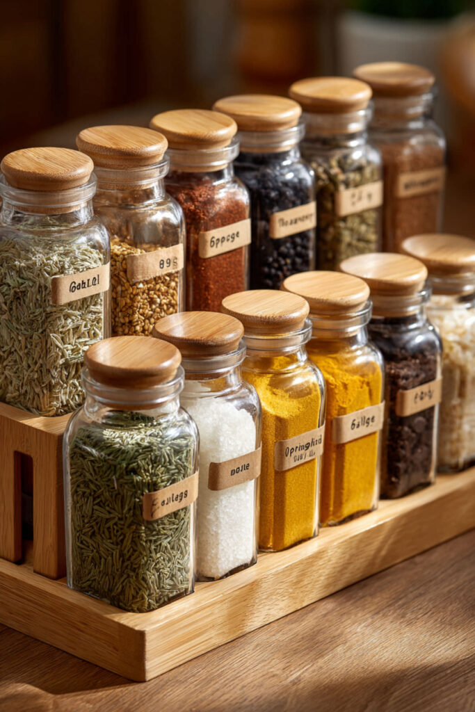 Glass Spice Jars with Bamboo Lids for a Clean, Modern Look
