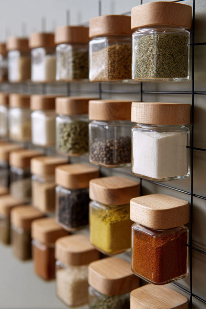 Open shelving in the kitchen is one of those polarizing topics — some people love it, some people think it’s just an invitation for dust. But when you use your open shelves specifically for a spice jar display, it’s a game-changer. A single shelf (or section of a shelf) dedicated to a neat row of matching spice jars creates a focal point that’s both functional and decorative. I recommend a slim floating shelf in natural wood — oak or walnut — with a single row of matching glass or ceramic jars lined up evenly. The key is restraint: don’t overfill the shelf. Leave some space between the jars so each one breathes. This spice jar display approach turns your everyday spices into a design element that adds warmth and personality to your kitchen. It’s the kind of detail that makes visitors look at your shelves and say, “I need to do this in my kitchen,” which — let’s be honest — is one of the best compliments you can get.