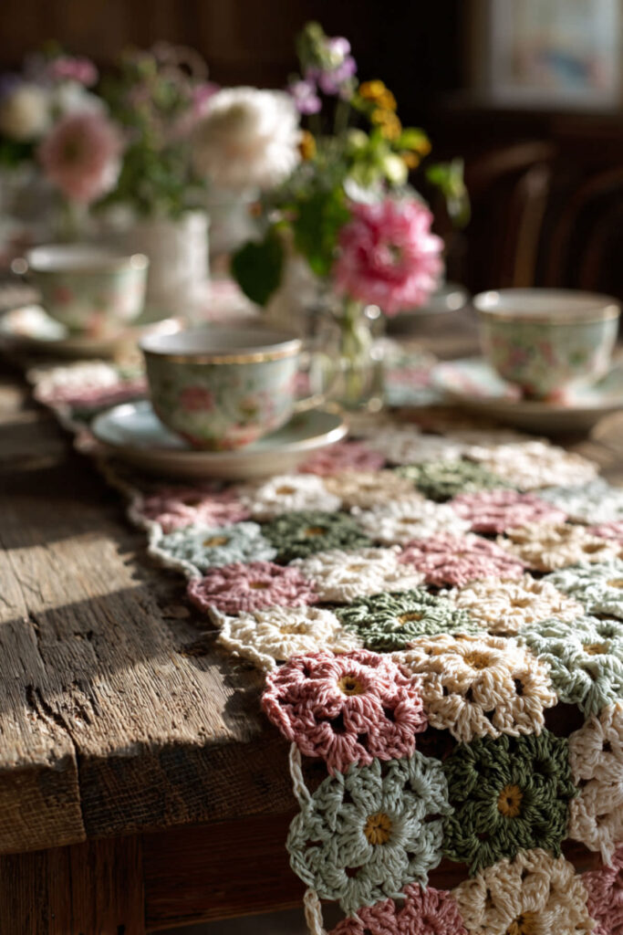 Crochet Table Runner with Floral Accents