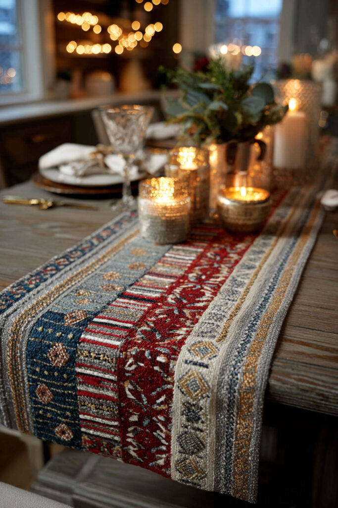 Here’s a trick that’s been gaining traction in table styling circles: layering two runners. It sounds like it might look cluttered, but when done right — say, a wide linen runner on the bottom and a narrower woven or embroidered one on top — it creates this rich, layered effect that makes the whole table feel thoughtfully styled. It’s the table runner equivalent of layering necklaces.