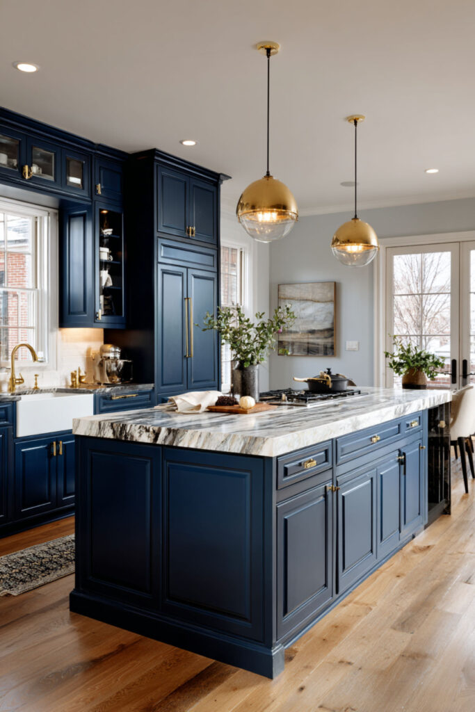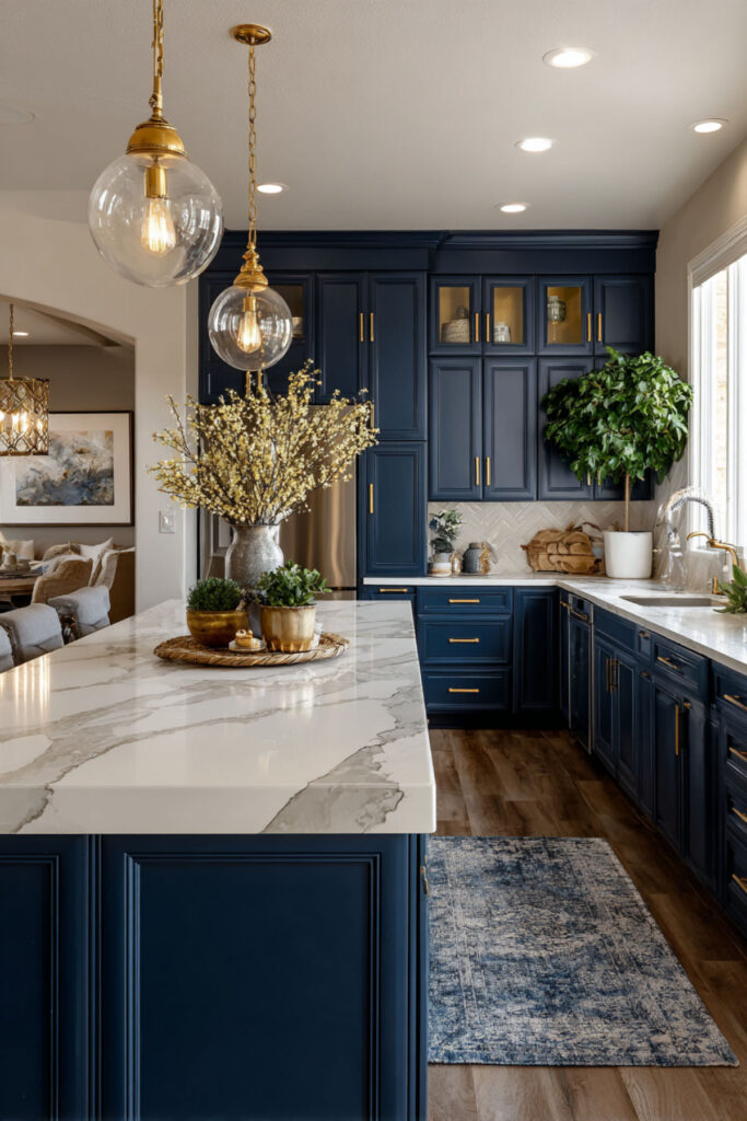 Navy Blue Kitchen Cabinets for Grounding Energy