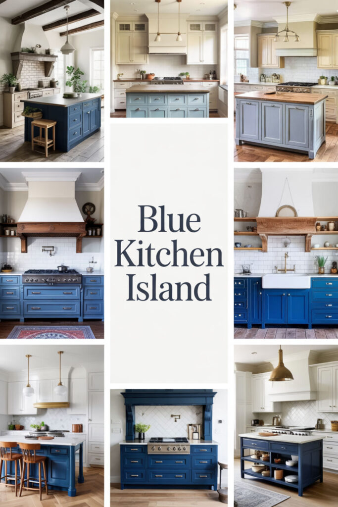 A blue kitchen island becomes your refreshing focal point in an otherwise neutral kitchen. Navy blue kitchen island provides drama without overwhelming tired senses. The island color draws focus while maintaining overall calm.