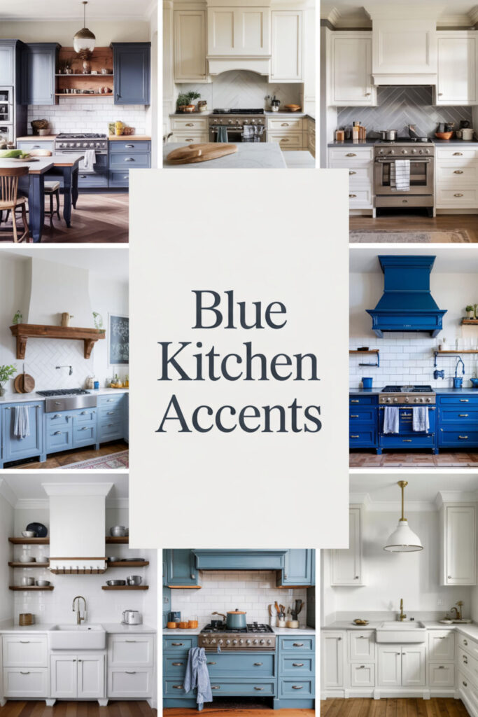A neutral kitchen with blue accents allows gradual introduction of blue’s calming properties. Kitchen blue accents through textiles and accessories test your response. Blue kitchen decor can be adjusted based on what actually helps versus what looks good.