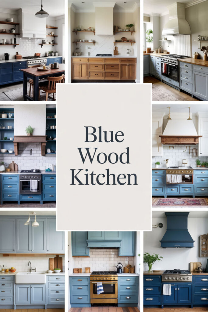 A blue and wood kitchen combines calming color with grounding natural material. Blue oak kitchen combinations feel organic rather than decorated. The wood grain provides gentle pattern that doesn’t overwhelm.