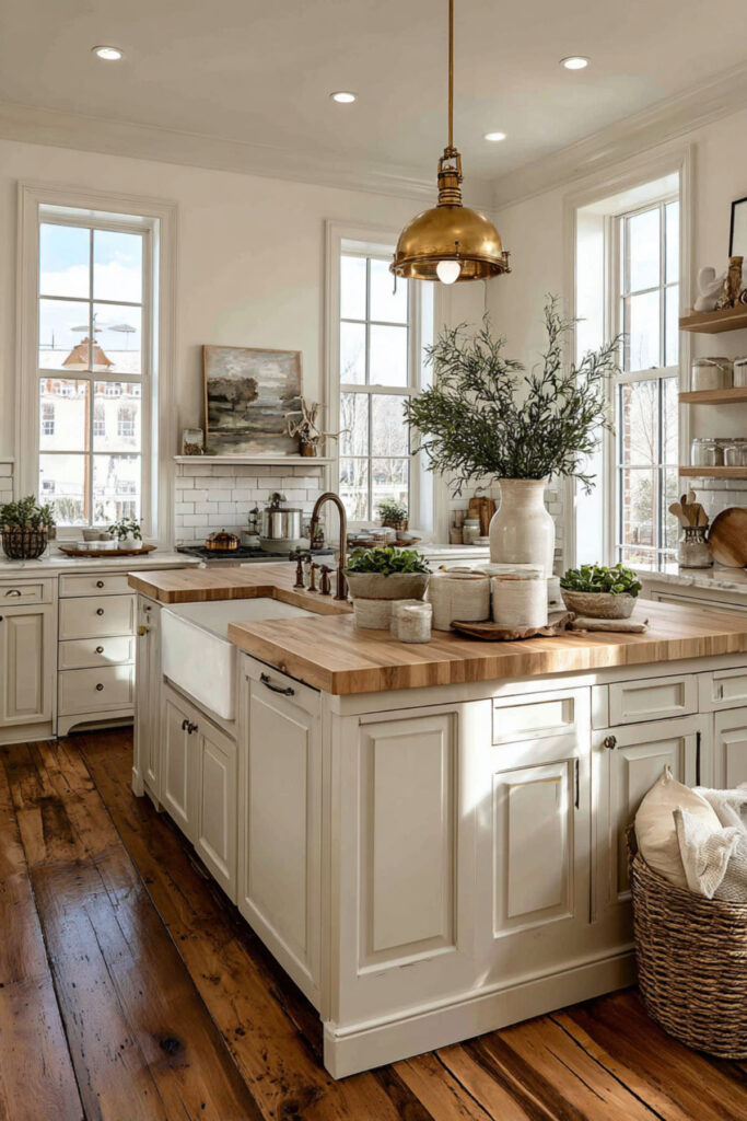 Layering different shades of cream with pure white creates incredible depth while maintaining that light, airy feeling. Use bright white for trim and ceiling, cream for cabinets, and maybe a warmer ivory for walls. This tonal approach feels sophisticated and intentional.