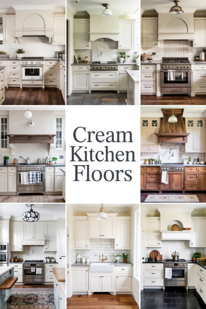 Cream Kitchen Cabinets Dark Floors for Grounding