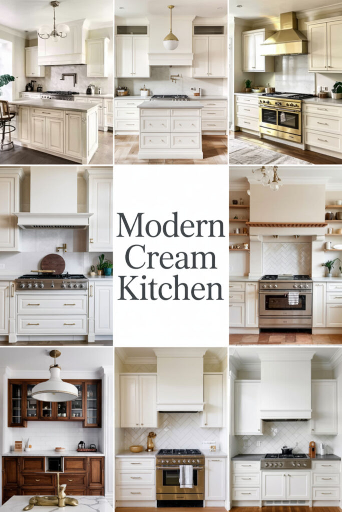 Modern doesn’t have to mean white or grey—cream can absolutely work in contemporary kitchens when paired with the right elements. Think flat-panel doors, integrated appliances, waterfall countertops, but all in warm, creamy tones. The warmth actually makes modern design feel more livable and less of a showroom.