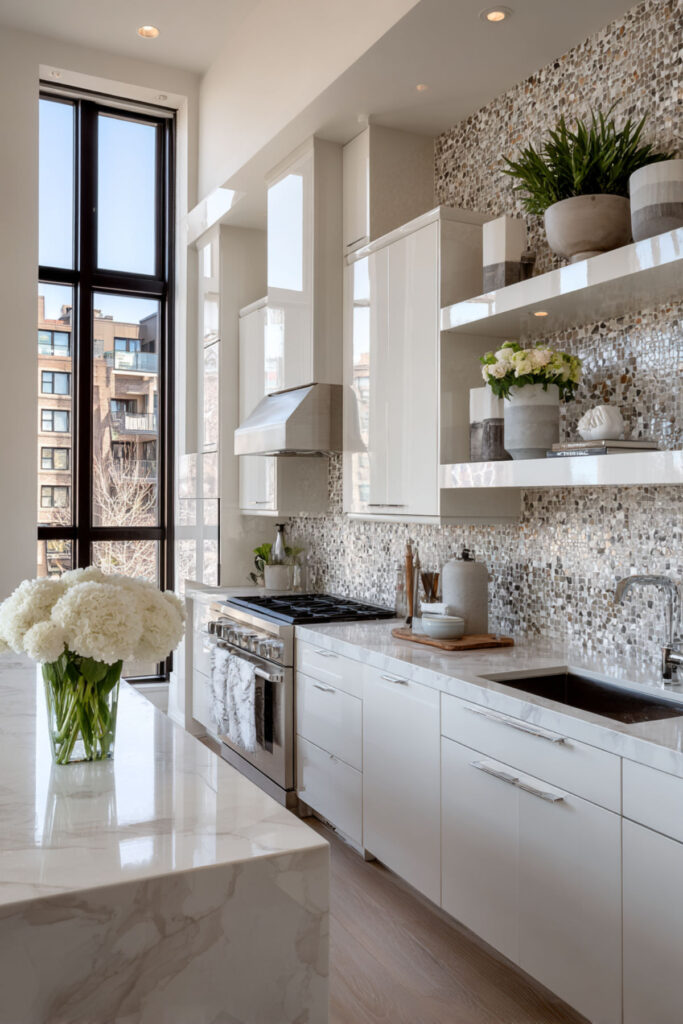 Contemporary kitchens embrace florals through abstract interpretations—oversized flower photography, geometric floral tiles, or minimalist botanical lines. These modern florals feel artistic rather than traditional. Clean lines prevent any fussiness.