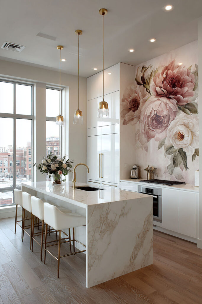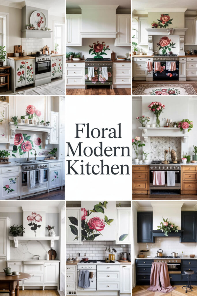 Modern kitchens with floral elements—think sleek cabinets with bold floral wallpaper, minimalist layouts with statement flower art, or industrial fixtures with delicate floral touches—create unexpected sophistication. The contrast is the charm.