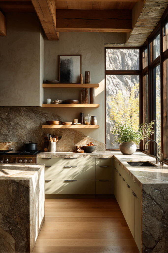 Cream Green and Wood Kitchen with Natural Textures