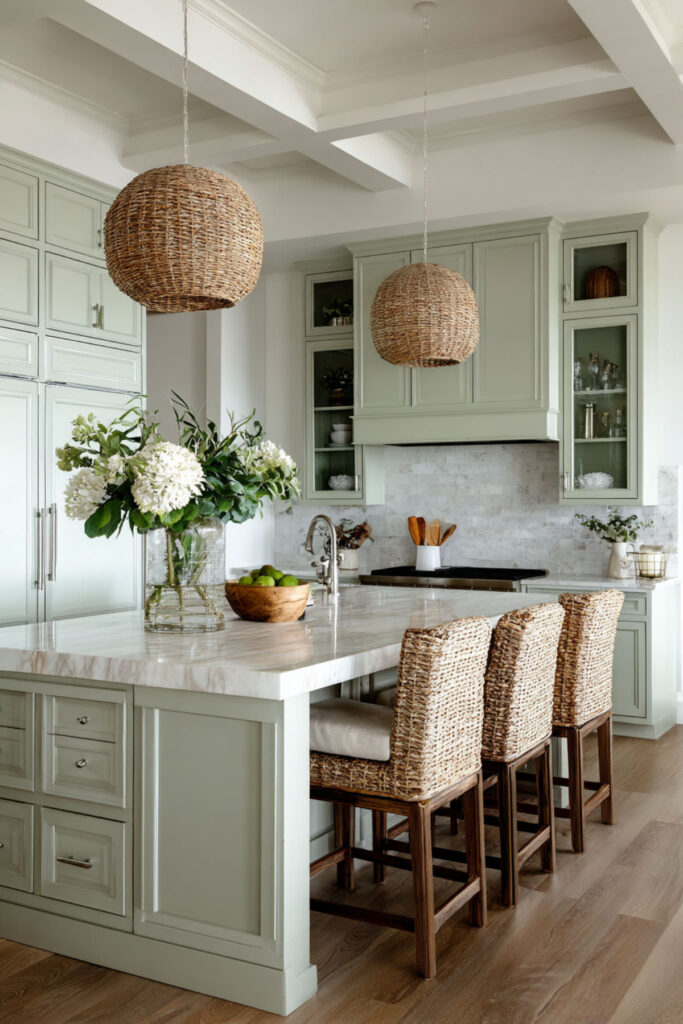 Celadon Kitchen With Cream and Linen Textures