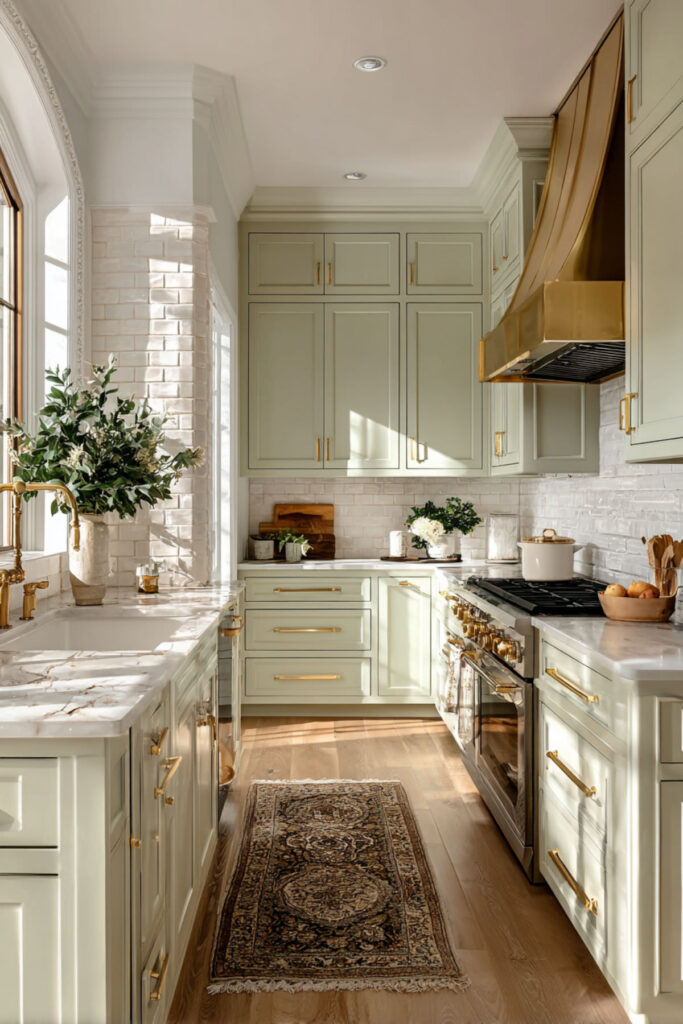Sage Green and Cream Kitchen With Brass Accents