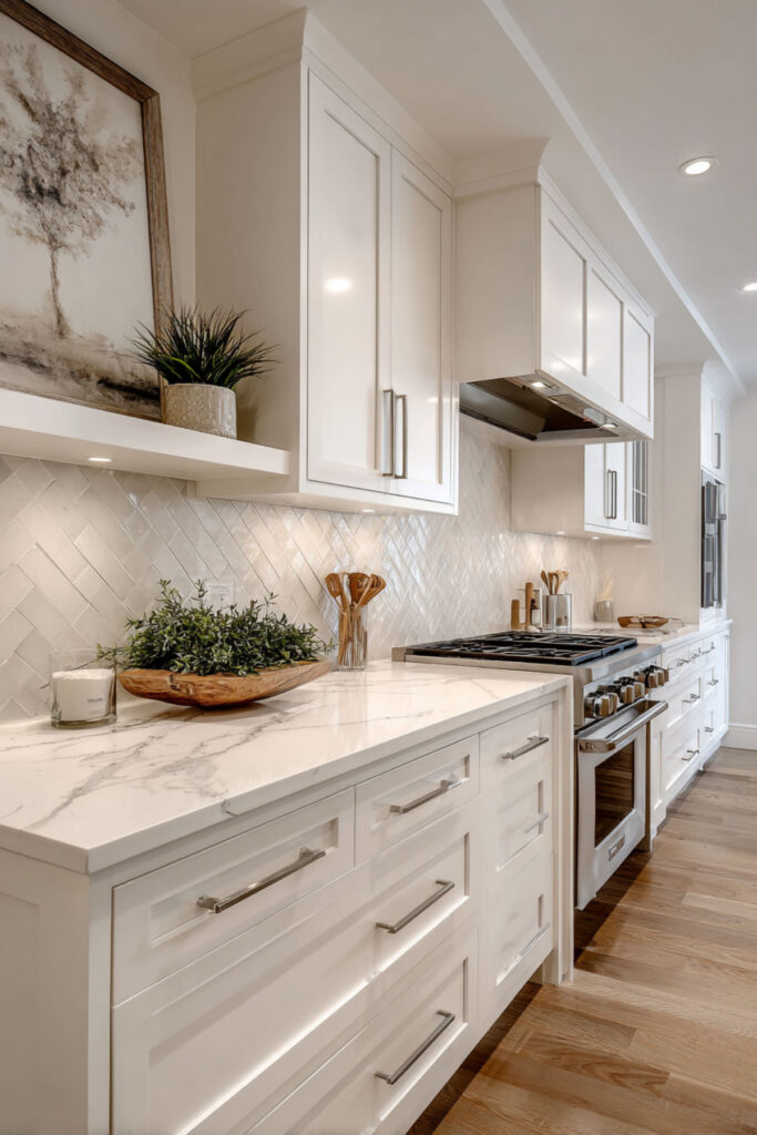 Touch-to-open uppers paired with locked lowers create zones without visible baby-proofing. I absolutely recommend these hidden magnetic locks; they’re invisible from outside but impossible for toddlers to open. Modern doesn’t mean minimal when it comes to safety – it means smart integration.