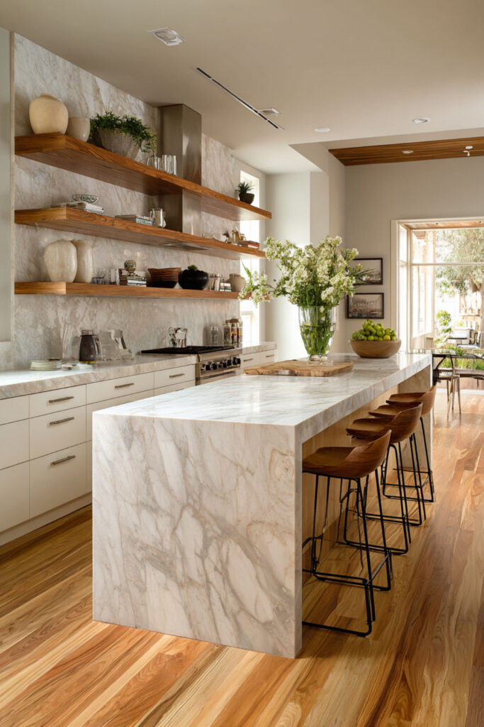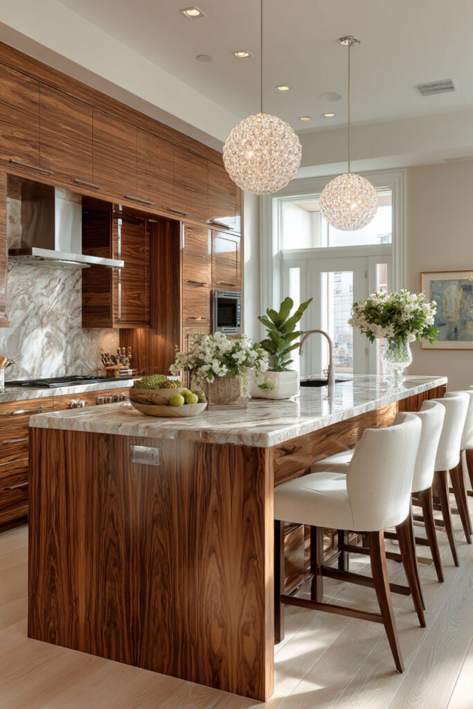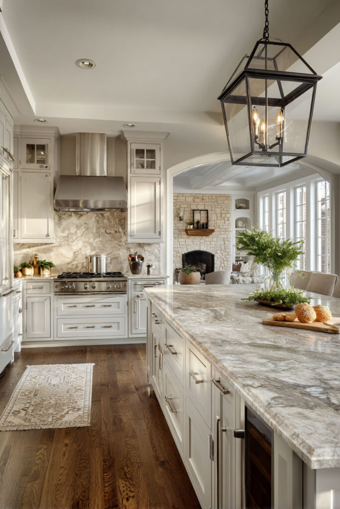 Modern kitchen counter decor for busy families means every item serves dual purposes – beautiful to look at, essential for organization. That marble utensil holder isn’t just decorative; it corrals pens, scissors, and the random items kids constantly need. Sleek trays designated for different purposes – homework supplies, device charging, permission slips – keep items contained while looking intentional. The modern aesthetic naturally emphasizes clean lines that resist clutter accumulation better than busy farmhouse styles.