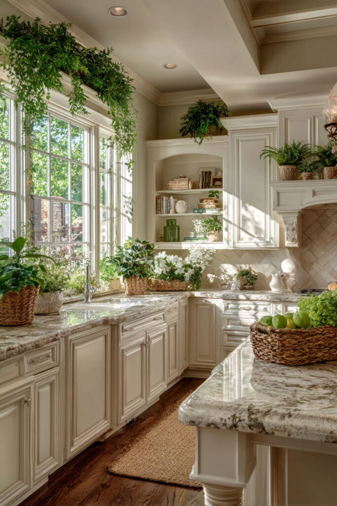 Choose low-maintenance varieties that forgive irregular care during busy weeks – pothos, snake plants, succulents. The green elements provide visual calm during stressful homework sessions and dinner prep chaos. Plants in coordinating pots unify the counter décor while adding organic beauty. This living décor improves air quality during hours spent in kitchen for homework and meals.