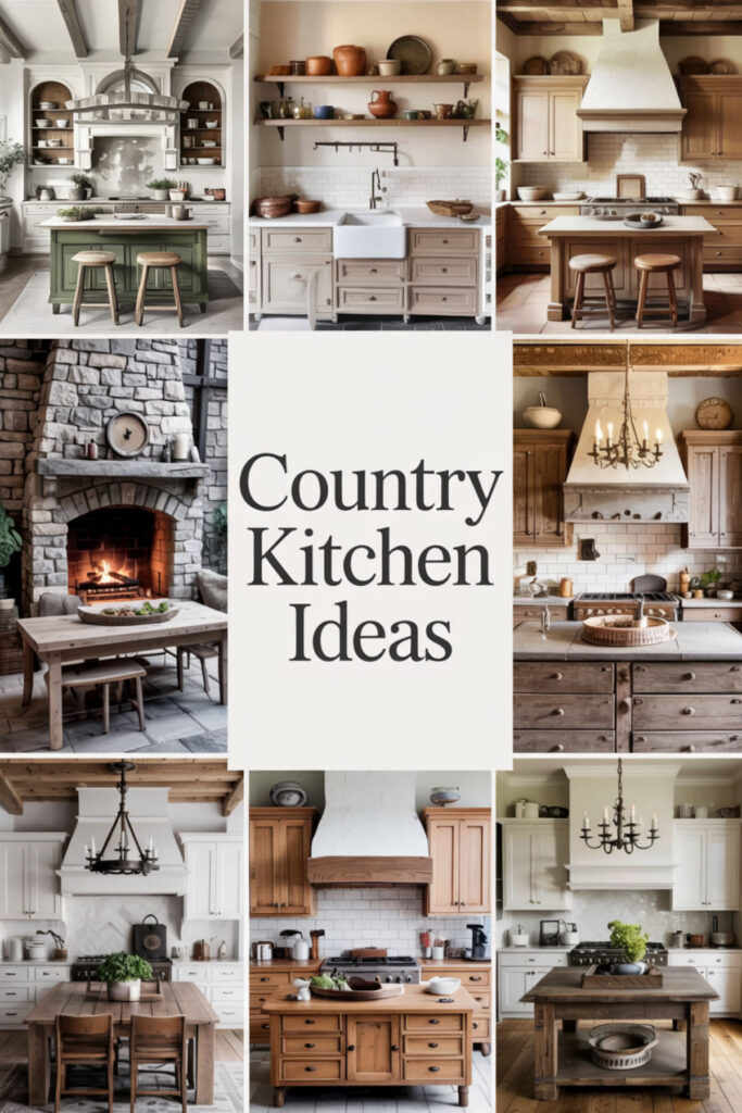 An apron front farmhouse sink might just be the ultimate country kitchen statement piece. There’s something about that deep basin and exposed front that immediately signals “this is where real cooking happens.” Whether you go with classic white porcelain or switch things up with a copper or concrete version, this sink style transforms the entire feel of your kitchen.