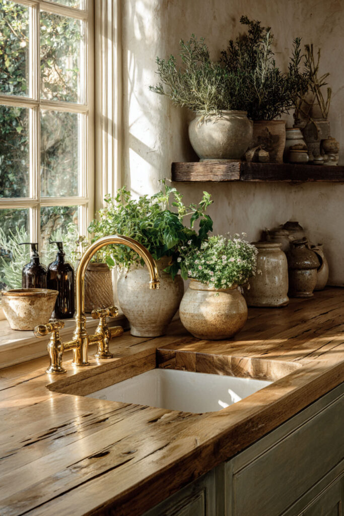 I really recommend this chalk-style furniture paint for cabinets—it gives that perfect matte, lived-in finish. These colors work beautifully as accents on islands or lower cabinets while keeping uppers light and bright. The key is choosing colors that look like they could’ve been mixed from natural pigments—nothing too saturated or artificial.
