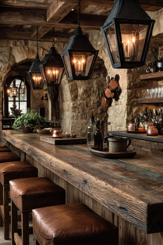 I really recommend this leat, stone accents, and industrial elements that feel substantial and grounded. It’s farmhouse style with a bit more swagger—less shabby chic, more “I could brand cattle in here if necessary.”