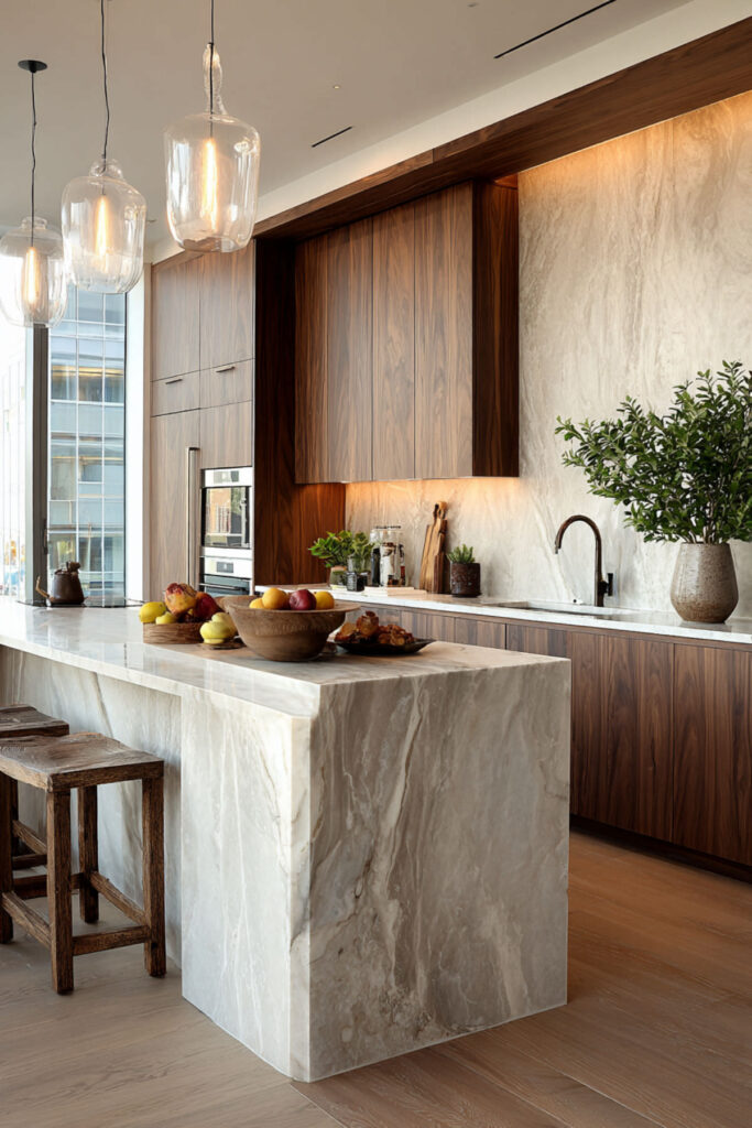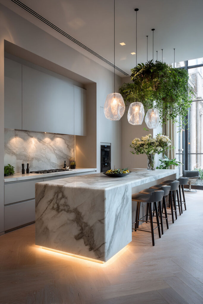 The cool surface provides literal and figurative calm, always maintaining its composed temperature. Luxury kitchens 2025 trends lean toward these statement stones that speak for themselves without supporting decoration. The investment in exceptional marble pays dividends in daily pleasure and lasting value. This approach lets nature provide the only pattern needed in your calm luxury space.