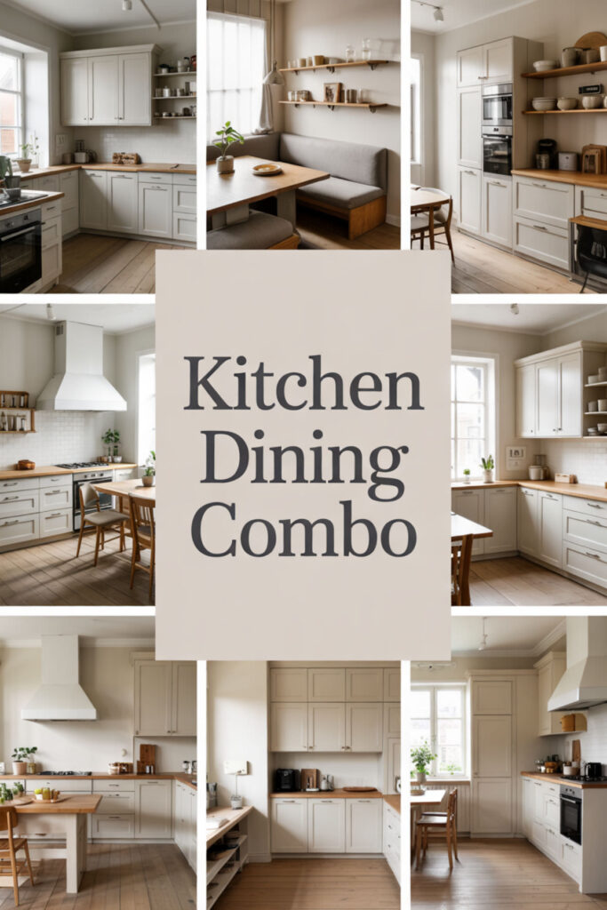 A kitchen dining room combo layout achieves modern sophistication through material continuity. Same flooring throughout, consistent color palette, lighting that relates but doesn’t match. The dining area might feature a statement chandelier that complements kitchen pendants.