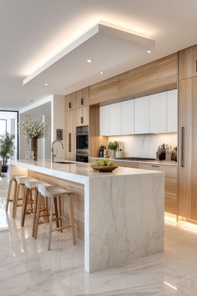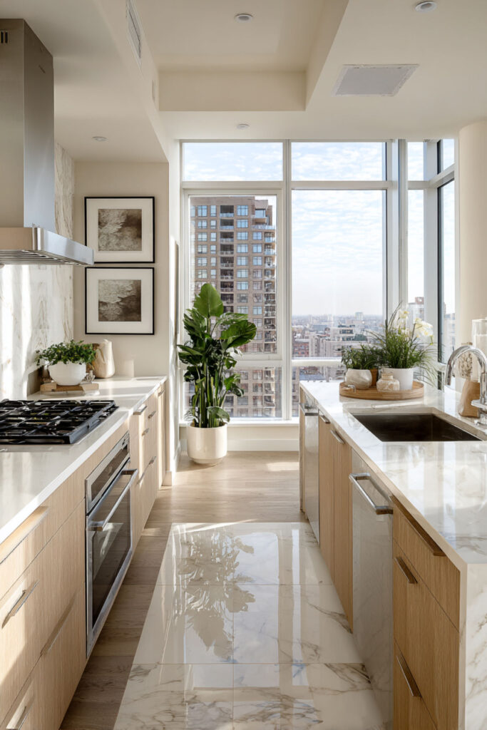 I really recommend carrying your kitchen’s wood tone into adjacent spaces. This holistic approach makes homes feel larger and more peaceful.