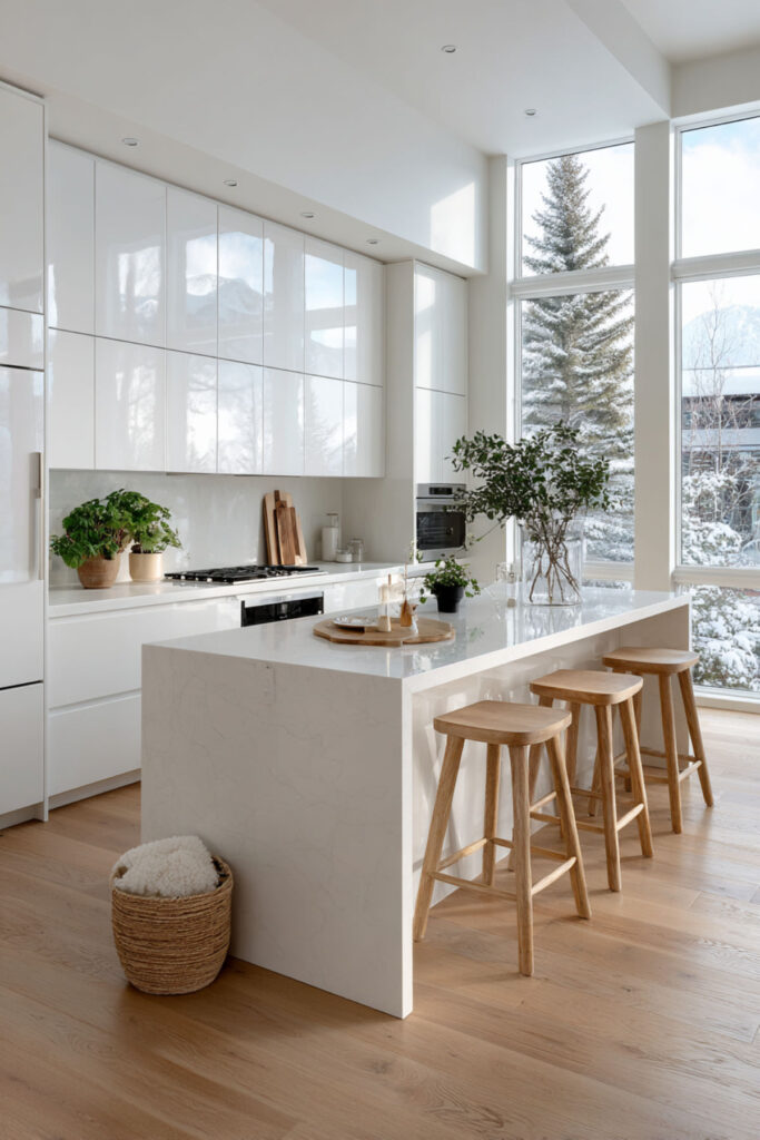 All-white Nordic kitchens create this envelope of calm that feels both minimal and cocooning. But Nordic white isn’t stark—it’s layered whites with different textures and subtle variations that create depth. Mix matte and gloss, smooth and textured.