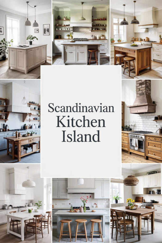Nordic islands tend toward simple, functional designs—often moveable, always practical, never overwhelming the space. They provide work surface and storage without disrupting flow. Natural wood tops on white bases bring warmth.