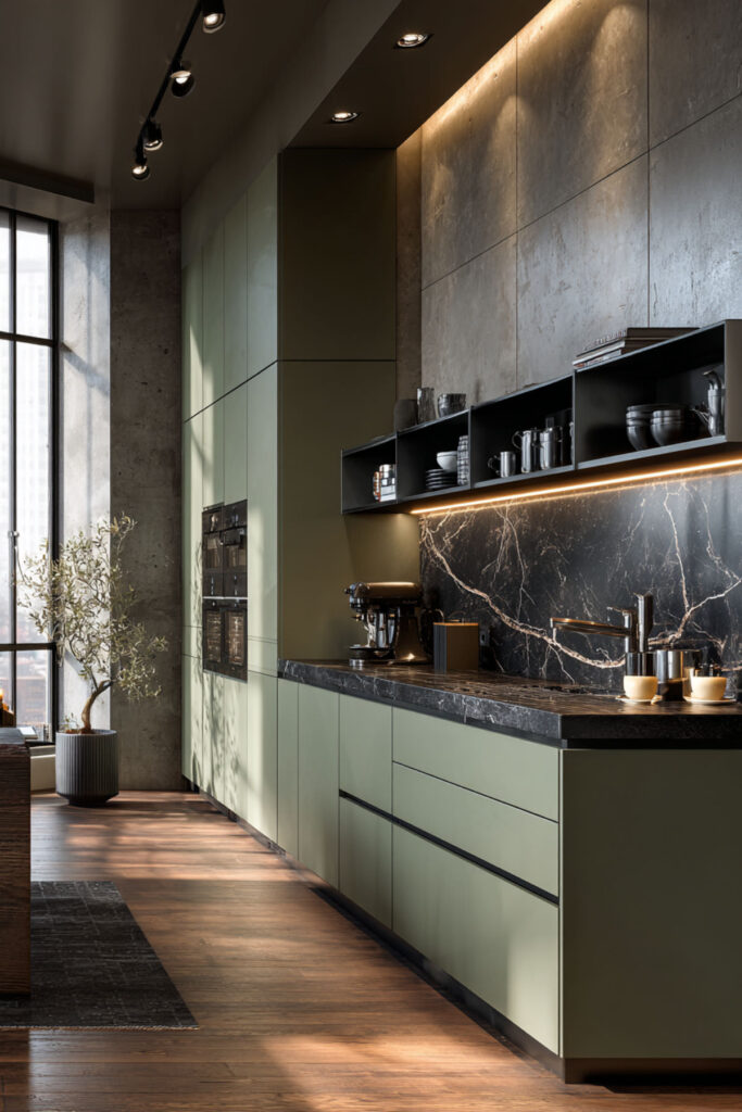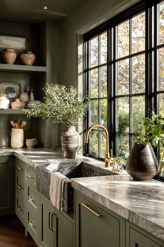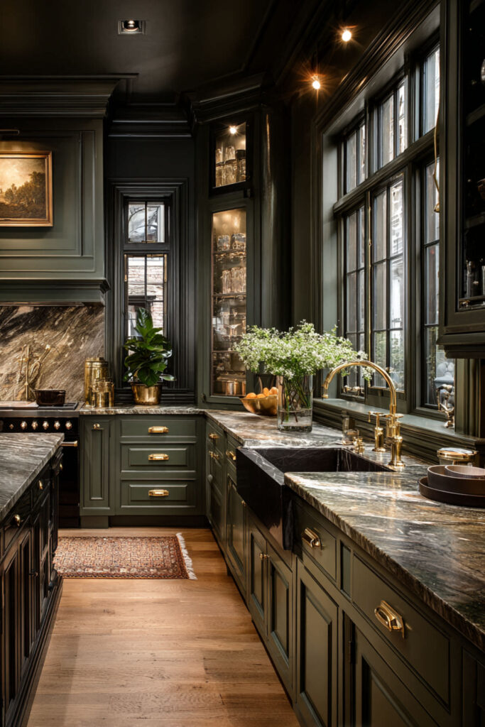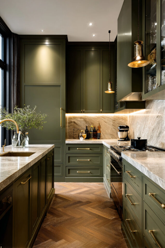 Dark Olive Green Kitchen Cabinets for Moody Elegance