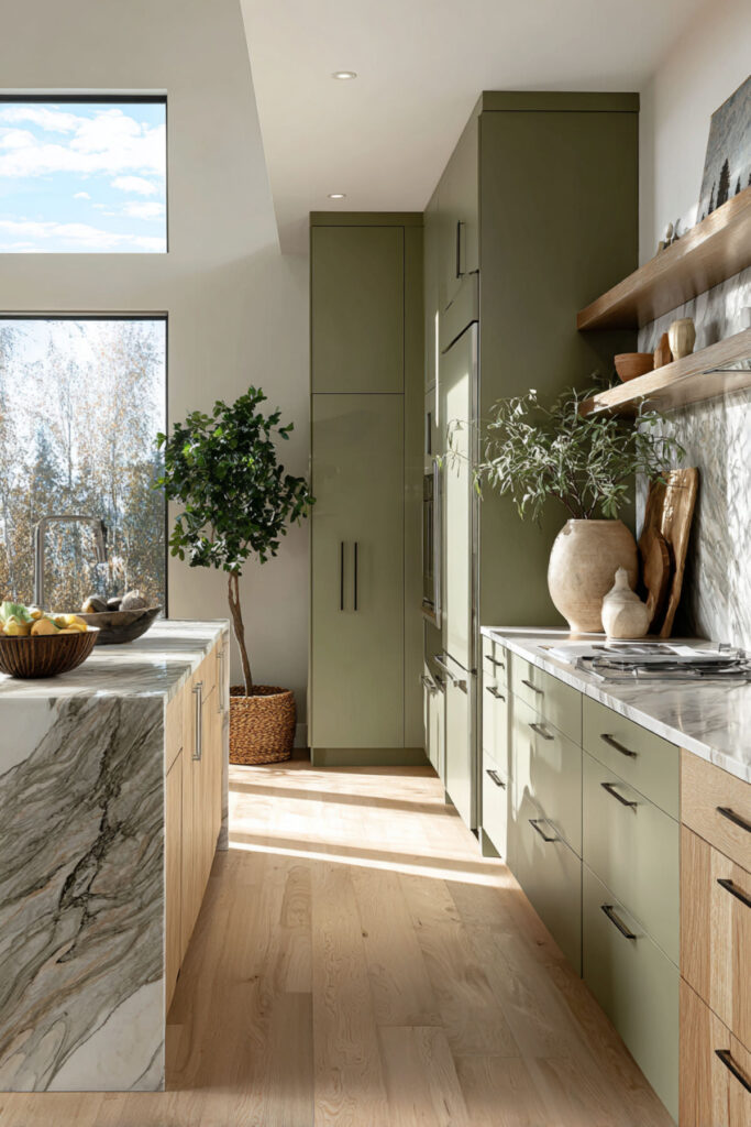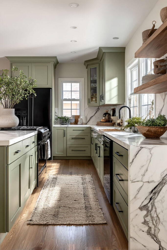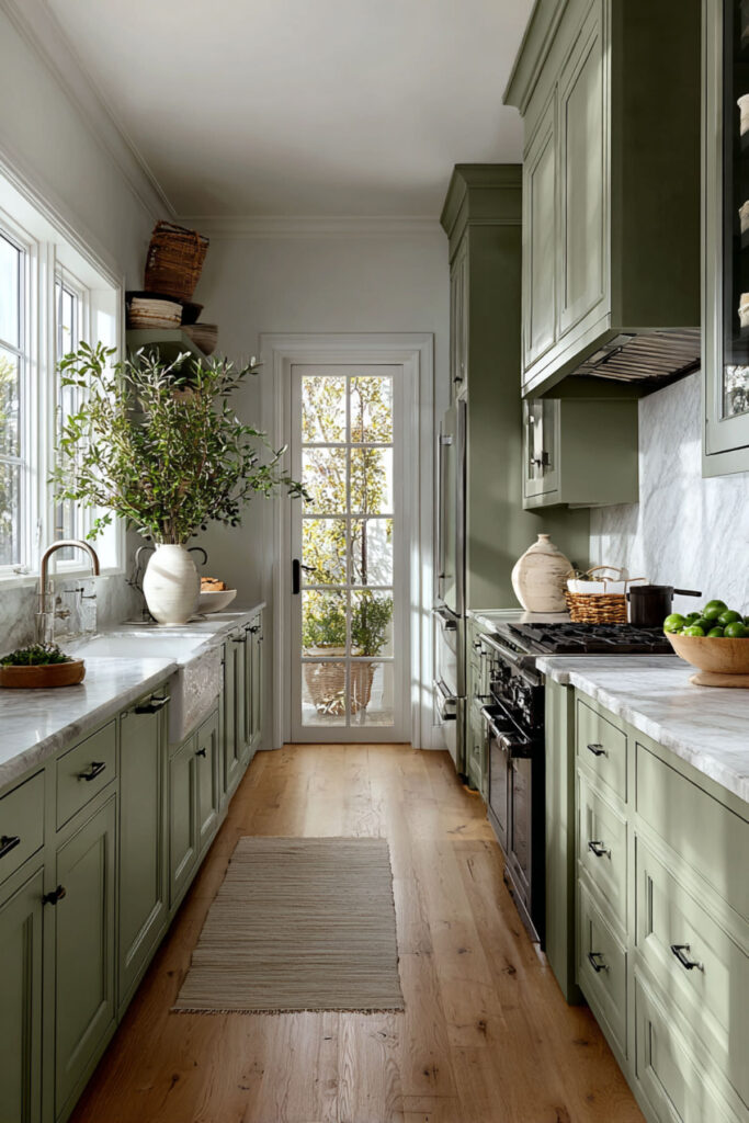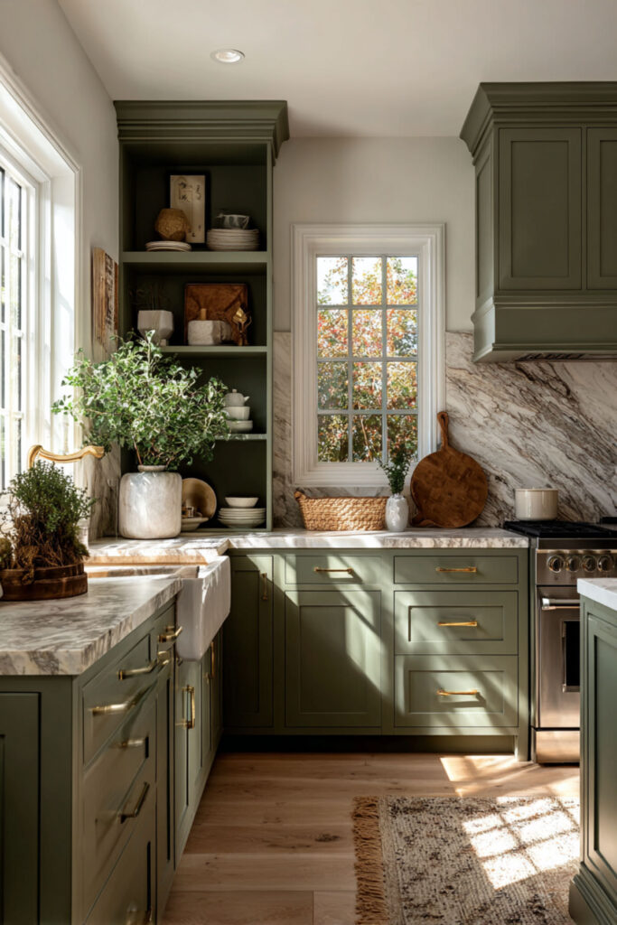 Light Olive Green Kitchen Cabinets for a Softer Look