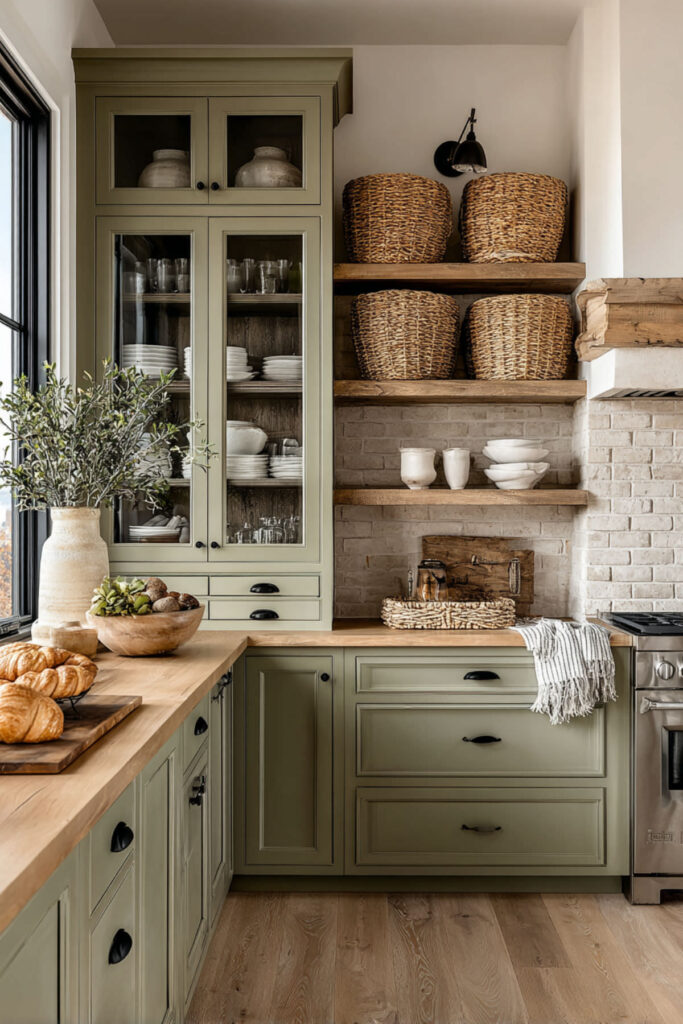 Olive isn’t just a color choice—it’s a lifestyle statement. It says you value nature, sophistication, and warmth over trends and flash. Whether you go all-in with olive cabinets or just add touches through walls or accessories, this color brings a groundedness to kitchens that’s incredibly rare. It’s the color of slow mornings, home-cooked meals, and conversations that last past midnight.