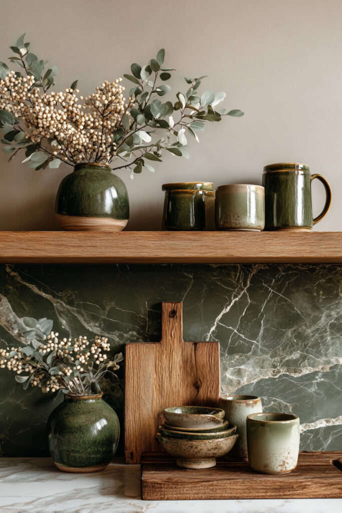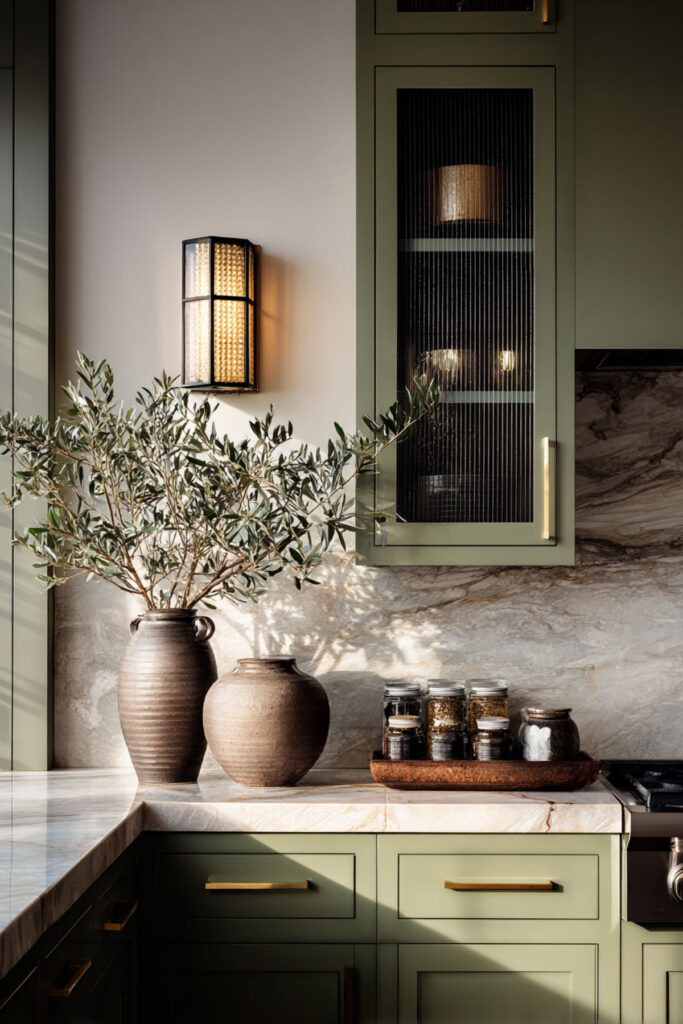 Olive Green Kitchen Decor: Styling the Marble Counter