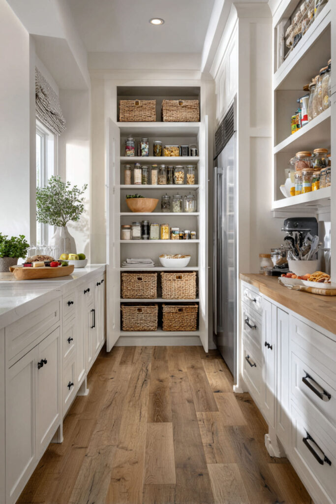 The height allows for categorization by frequency of use, preventing daily diving through rarely-used items. Vertical cabinets work perfectly for storing different sized items – tall cereal boxes, pasta containers, bulk paper goods – without wasting space. This configuration keeps counters clear for actual food prep rather than storage overflow during busy weeknights. The vertical approach forces regular purging since limited space won’t tolerate accumulation of expired items.
