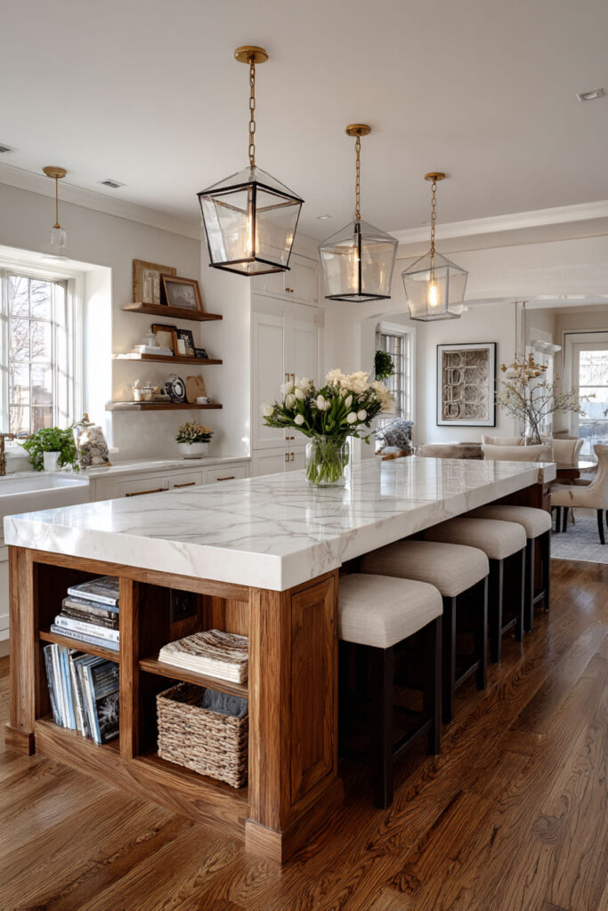 That kitchen island isn’t just for meal prep anymore. Create designated homework zones with built-in supply storage underneath. Use kitchen island decor ideas that incorporate desktop organizers, good task lighting, and charging strips built into the island sides.