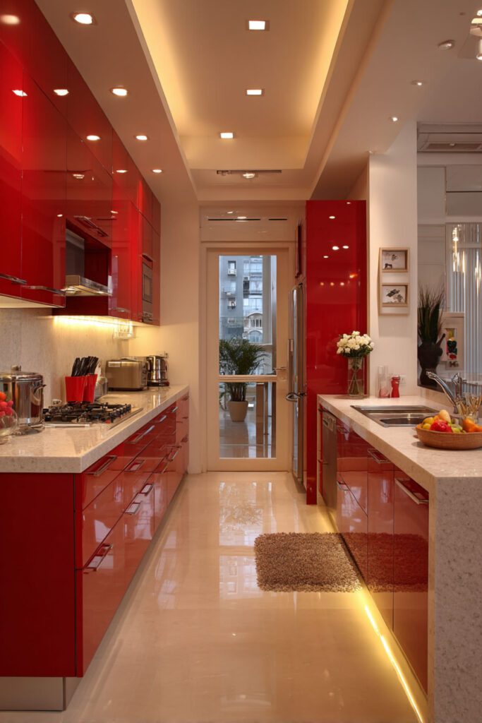 Small kitchens with toddlers need every trick—red adds energy without taking space. Use red as an accent color on one wall, the island, or just accessories to avoid overwhelming. Small doses of red can transform tight spaces from cramped to cozy. Keep pathways clear for toddler traffic.