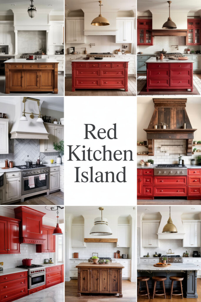 A red island in an otherwise white kitchen creates the perfect focal point—bold enough to energize the space but contained enough to not overwhelm. The island becomes furniture, a statement piece that anchors everything. Choose a deep, sophisticated red for elegance or bright cherry for playfulness.