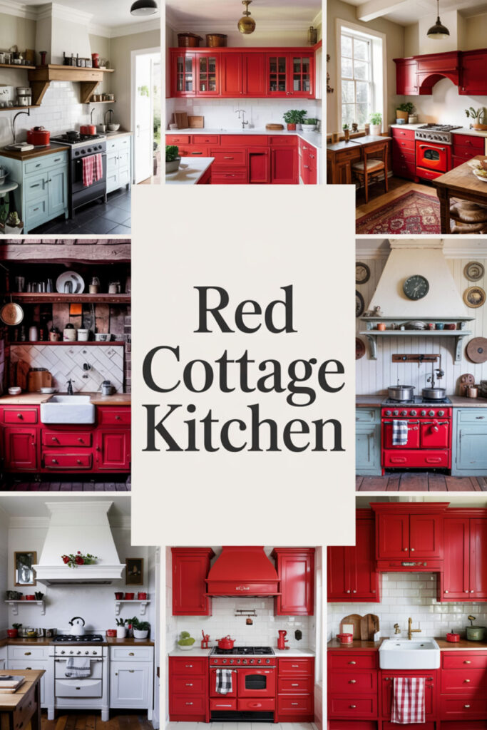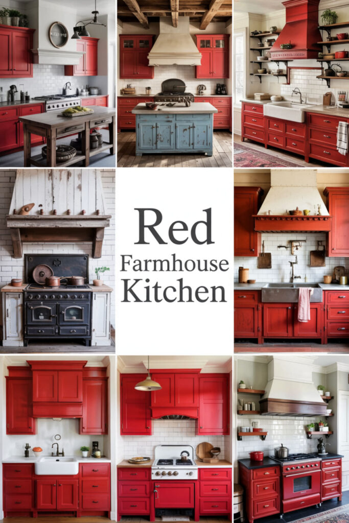 Farmhouse style typically leans white, but adding red creates this energetic twist on country charm. Think red barn-inspired cabinets, vintage red appliances, or red gingham accents against white shiplap. The combination feels both nostalgic and fresh.
