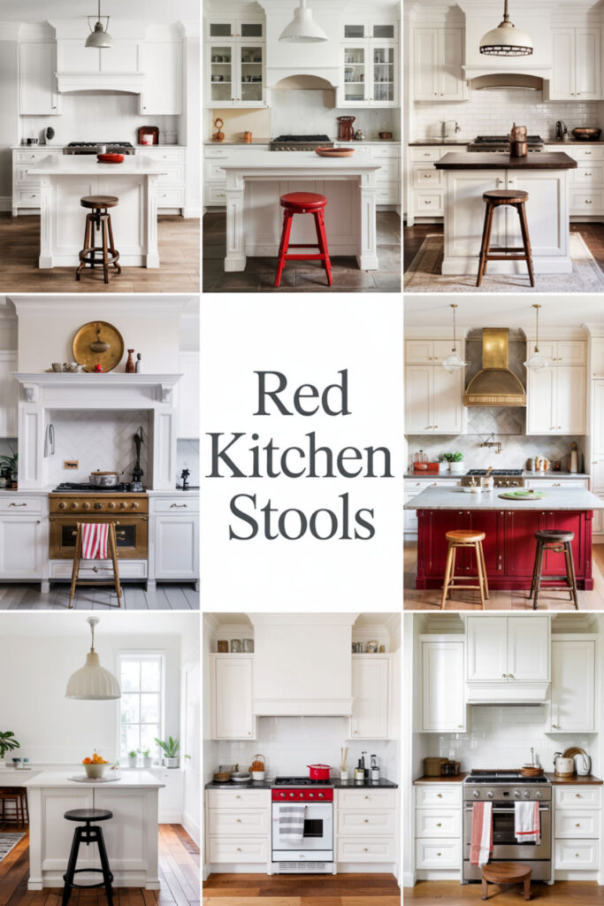 Red bar stools against a white kitchen island or counter brings instant personality without major commitment. They’re easily changed if you tire of red but make a big impact while you have them. Choose a red that complements your undertones—warm reds for warm whites, cool reds for bright whites.