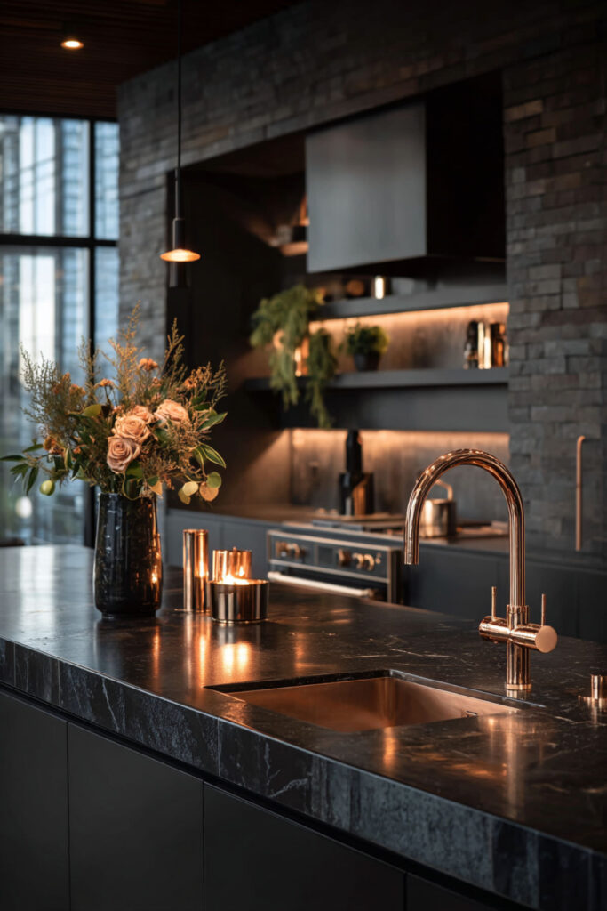 Rose Gold and Black Kitchen Ideas Modern Drama