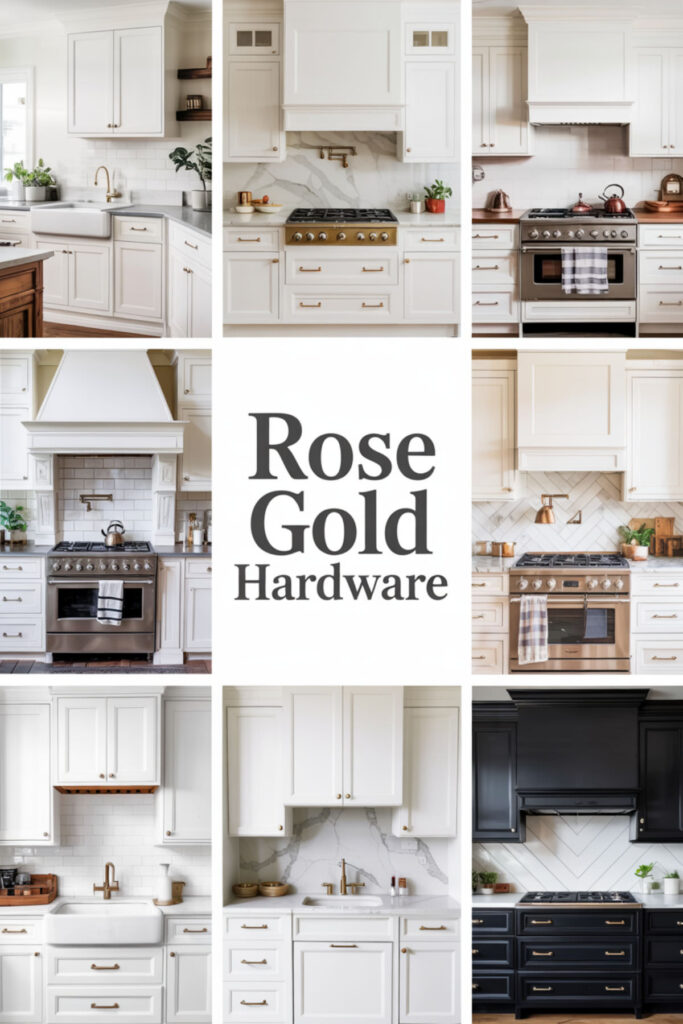 I really recommend these geometric rose gold pulls that feel modern but timeless. Consistency is key—all rose gold or none, mixing with other metallics rarely works unless very intentionally done.