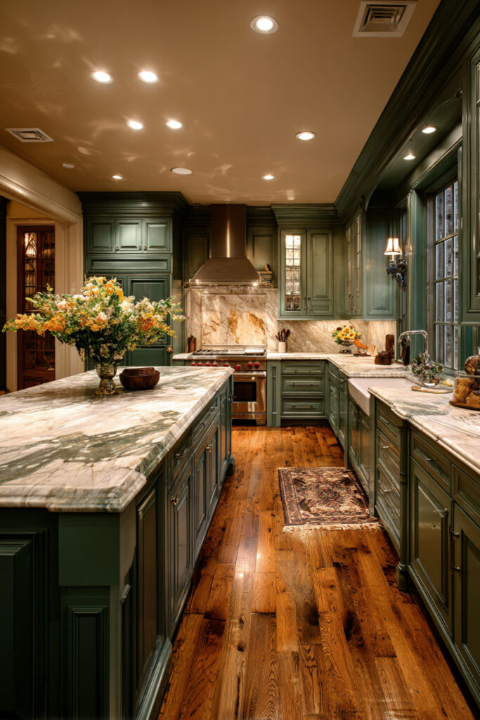 Dark Sage Green Kitchen Island for Richer Depth