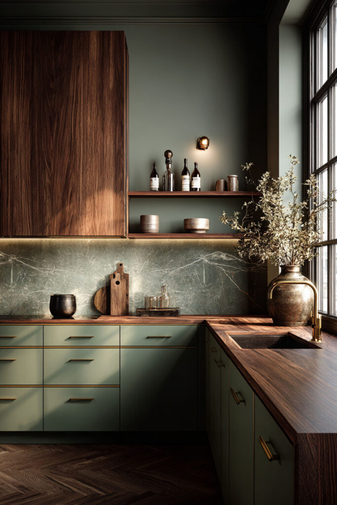 Sage Green and Walnut Kitchen for Rich Contrast
