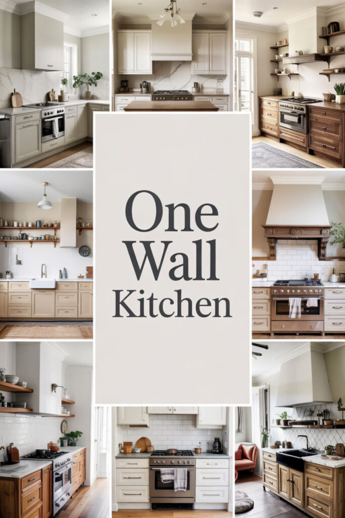 The one wall kitchen layout represents ultimate simplicity – everything aligned in a single, logical row. Storage, prep, cooking, cleaning, all in sequence without decisions about direction. This linear approach eliminates confusion and creates a zen-like clarity. Mount everything on the wall to keep counters completely clear.